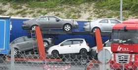 Robin, un anglais qui avait traversé la France pour rejoindre la Suisse en Saab 9-5 Fjord Blue a pris lors de son retour en voyage quelques photos de camions chargés de 9-5 et c'était en France!